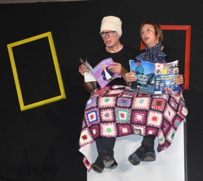 Succession de petites scènes décalées et humoristiques : « N’importe quoi mais pas pour n’importe qui !!! Je le crois ! Ils savent plus quoi inventer ! Faut dire qu’avec l’exemple que donne le monde… Ils croient même plus qu’il y ait une vie avant la mort. Ils ont perdu leur latin, ils partent à la pêche, vont à la chasse au Yéti… Ils philosophent, expérimentent le surnaturel… Bref dans leur tête c’est le Titanic ! Ils sont prêts à plonger… Même à encaisser des chèques en bois !